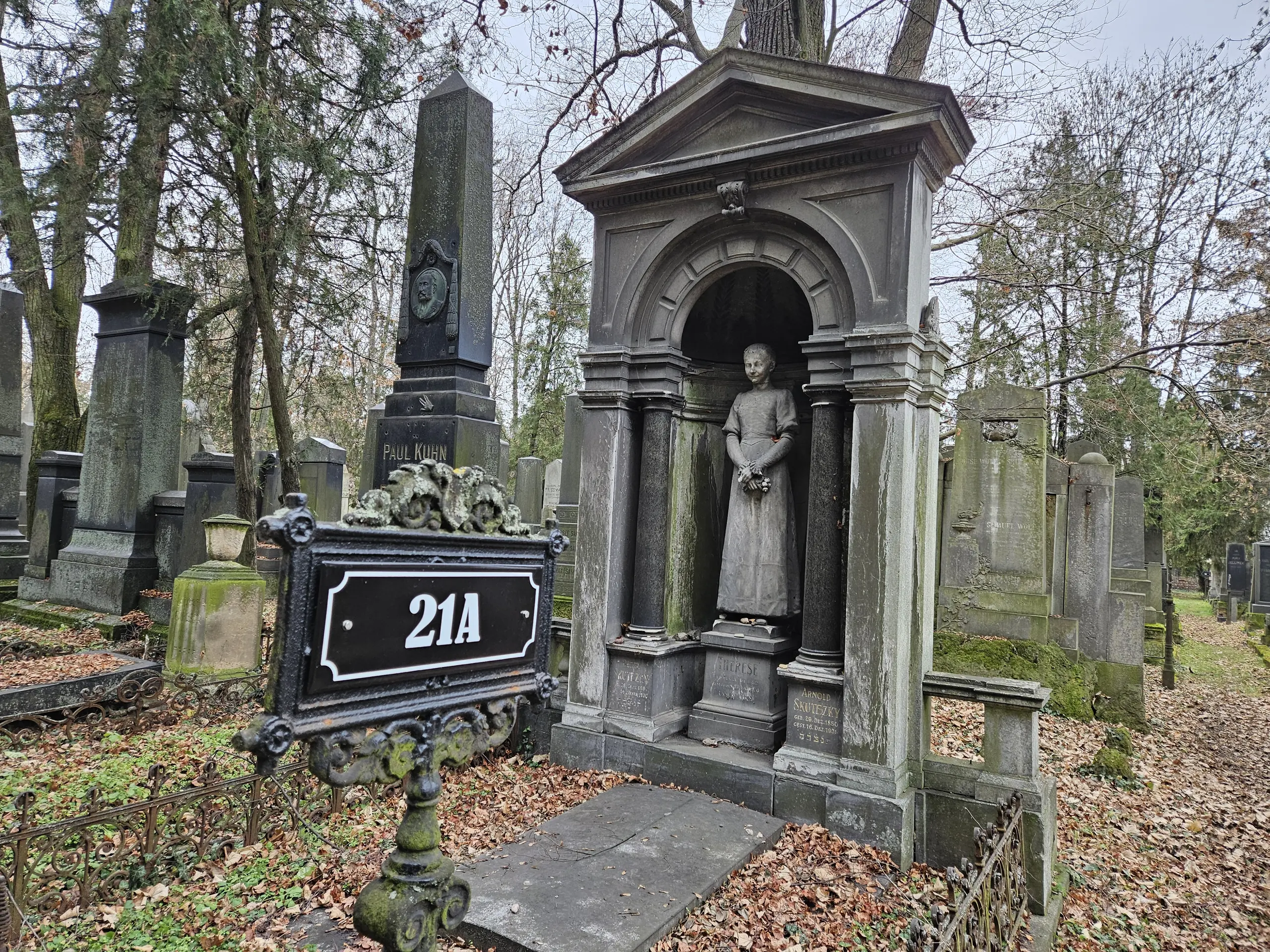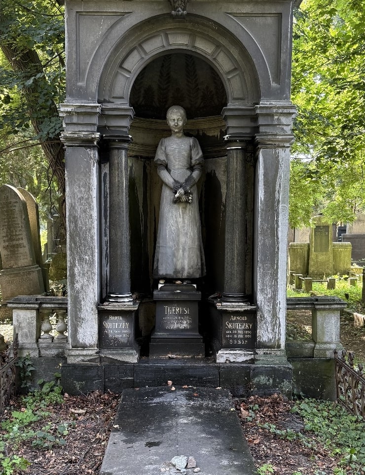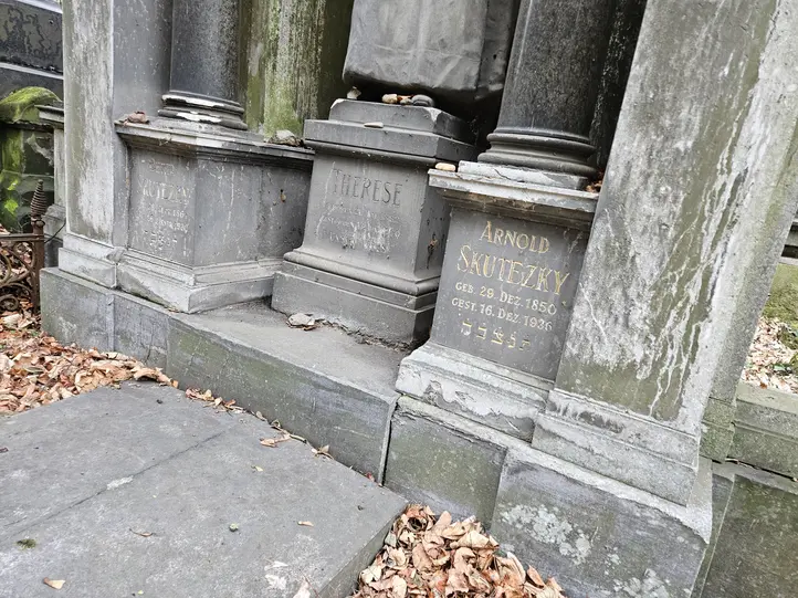 Hrob rodiny Skutezky je zvýrazněn zlatým kruhem.